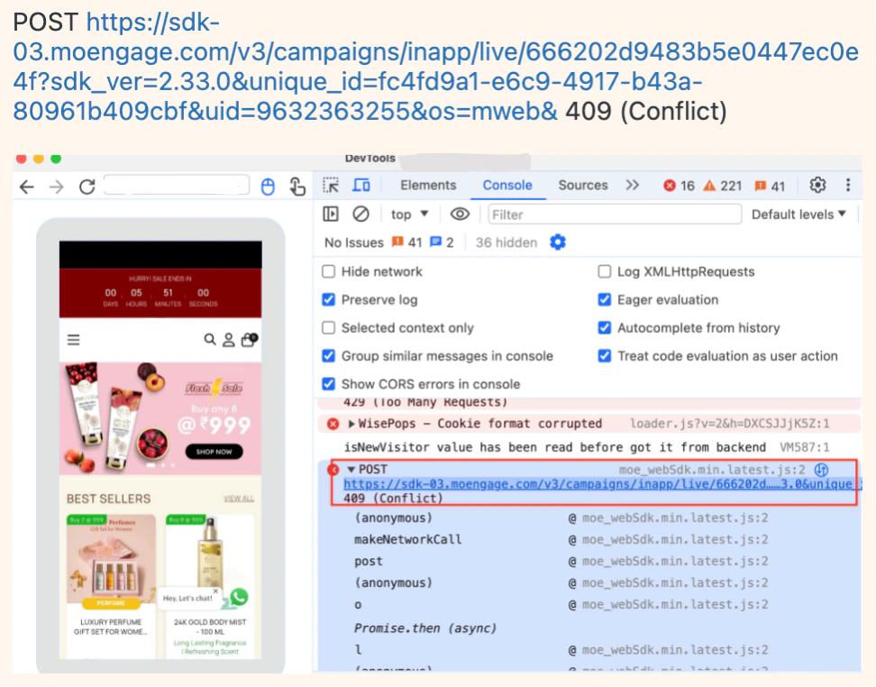 The issue arises due to a mismatch between the campaign’s expiry time and the countdown timer, causing the mobile webpage to be refreshed repeatedly.Solution